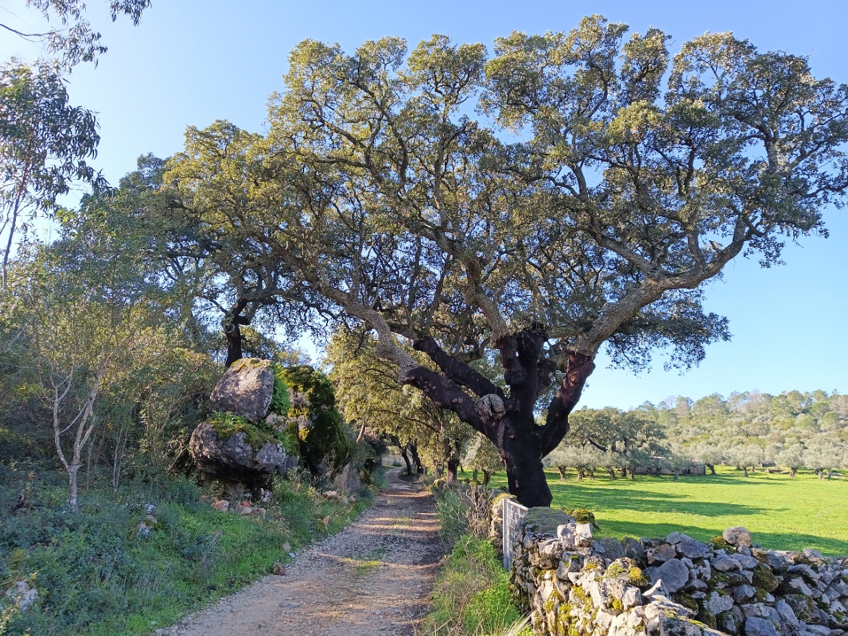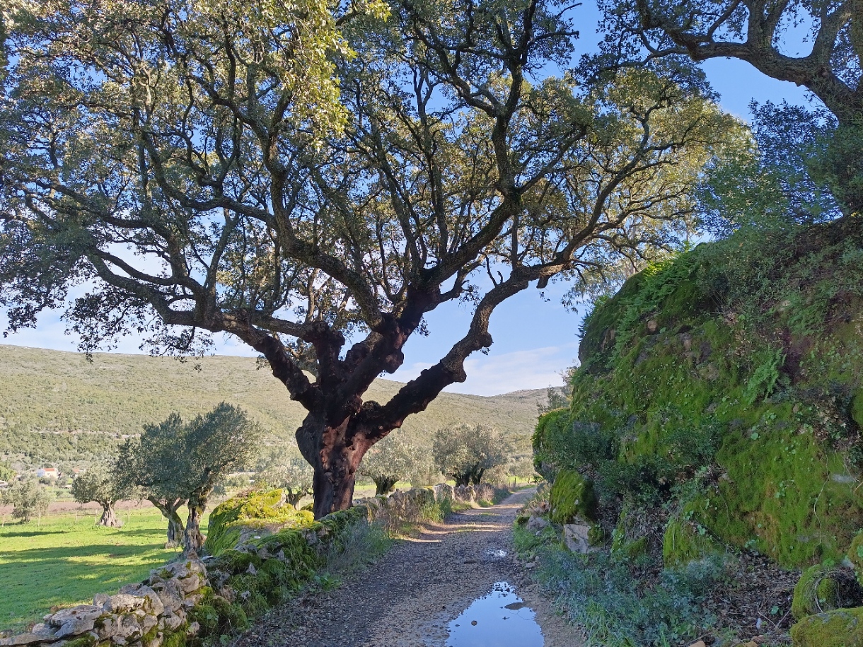 Vamos percorrer caminhos ladeados de muros de pedra seca, onde sobreiros monumentais ganham destaque e onde as oliveiras são uma presença quase constante. Aqui respira-se ruralidade e autenticidade!